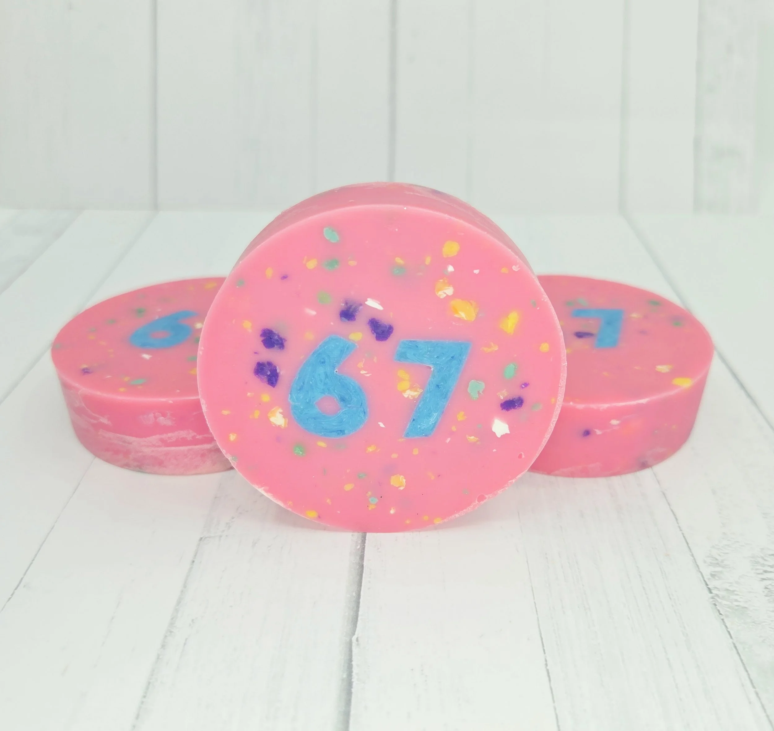 It’s nonsense, but it’s all that’s trending.. 1, 2, 3, 4, 5, Six, Seven, 8, 9, 10.. how tall is he? 6’ 7”.. How much does that weigh? 6.7lbs What’s the score? 6-7.. It doesn’t matter when you say this duo of numbers together.. just that you say it and do the motion. If you have a kid, these will sure bring a smile to their face. Scented in Apple & Apple Blossom
